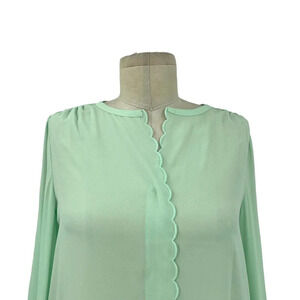 J. Crew Long-sleeve Drapey Scalloped Top Green Size XXS