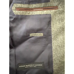 J. Crew Ludlow Slim-Fit Blazer - Gray Heathered Italian Wool Flannel by Vitale Barberis Canonico Size: 38R (see measurements below) Features: * Collar with notch lapels * 2-button closure; 4-button cuffs * Chest welt pocket; dual flap pockets * Double vented * 100% wool; lining is 100% cupro * Style no. 30139 * Like-new condition Measurements: * Shoulder-to-shoulder 17" * Chest 40" * Waist 37" * Sleeve length 25" * Shoulder-to-hem length 30"