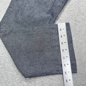 Men's J Crew Ludlow Slim Fit Unstructured Suit Pant Deep Water Blue Chambray Zipper Fly Clip Button Closure Cotton Linen Blend Somelos Fabric Woven in Portugal Flat Front Chino Dress Trousers Pants. Style H4161. 80% cotton, 20% linen.