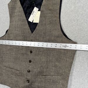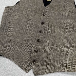 Men's New with tags J. Crew Ludlow Italian Fabric Herringbone Tweed 100% Linen Brown Buckle Back Welt Pockets Button Up Front Suit Vest Waistcoat. 100% Italian Linen. Style number 12941.