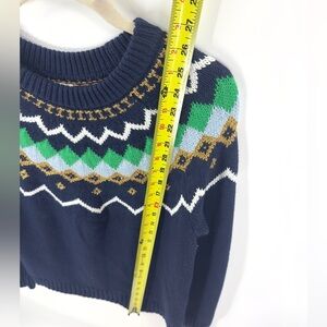 J Crew Womens Lurex Fair Isle Sweater Size S Blue Green Gold Wool Blend Jumper