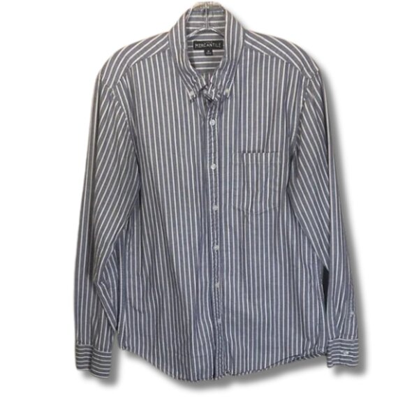 J. Crew M Mercantile Shirt Blue White Striped Button Down Preppy Business City