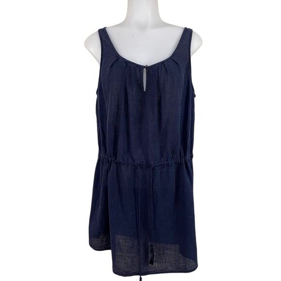 J Crew M Navy Blue Scoop Neck Sleeveless Dress Textured Cotton Cinch Waist