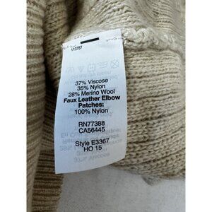 J Crew M Sweater Basket Weave Knit Elbow Patch Wool Preppy Fisherman Academia