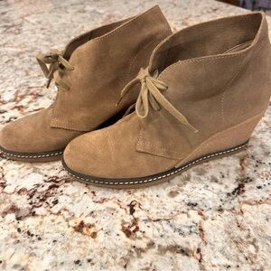 J Crew MacAlister wedge boot flax EUC leather upper bootie wedge shoe size 9
