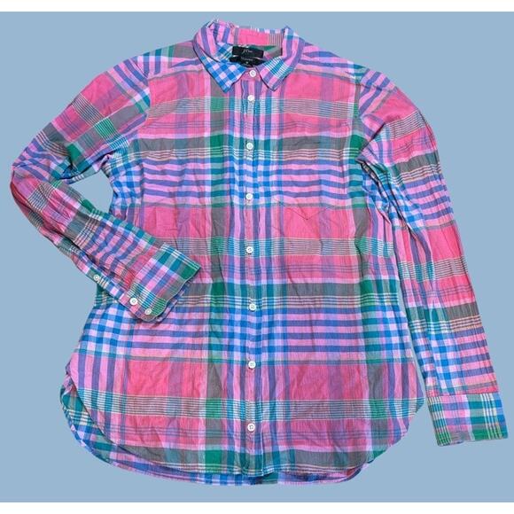 J. Crew Madras Plaid Button Up Long Sleeve Blouse Top Shirt