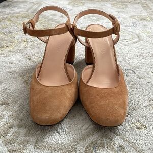 Maisie Ankle strap suede Heels by J. Crew in size 9. Excellent preowned condition. Tan color suede.