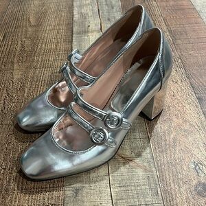 J. Crew Maisie double-strap heels in metallic leather BV726 5.5 silver