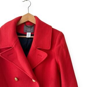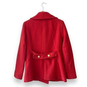 J. Crew Majesty Stadium Cloth by Nello Gori Wool Peacoat Style 49360 Red Orange Double Breasted Jacket 10 Women’s