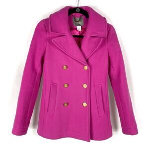 J Crew Majesty Coat Peacoat Fuchsia Pink WoolStadium Cloth Double Breasted Sz 0