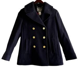 J. Crew Majesty Stadium Wool Peacoat Nello Gori Gold Button Navy Blue NWT P6