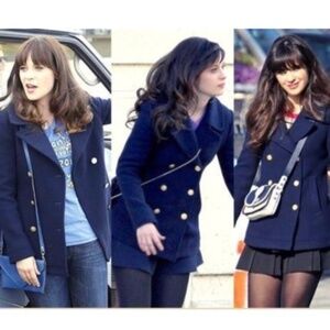 Classic shorter pea coat. This is an older style, as seen on Zooey Deschanel in New Girl. I wore it a few times for one spring/fall. Only flaw is there was a penny-sized straight tear in the pocket lining which I sewed up. You can’t see it as the jacket is fully lined. Offers welcome!