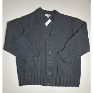 J Crew Marina V Neck Cardigan Sweater Womens XL Black Button Relaxed Chunky