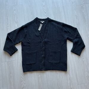 J Crew Marina V-Neck Cardigan Large Black FLAW Read