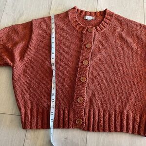 Cozy short-sleeve sweater. Button-up front. Ribbed cuffs and hem. Reposhing because it unfortunately doesn’t fit me.