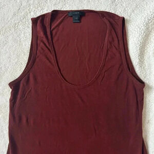 In a maroon/burgundy red color. Size XS, but has a comfortable stretch.
