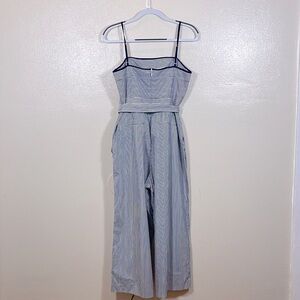 J. Crew Marseille Blue Pinstriped Striped Blue Jumpsuit with Belt size 6