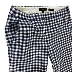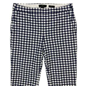 J. Crew Martie Pants Womens Sz 0 White Blue Gingham Checkered Print Tapered Leg
