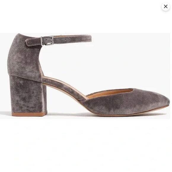 J. Crew Mary Jane Velvet Gray Ankle Strap Square Pump sz 12