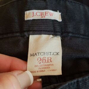 J. Crew Matchstick straight slim charcoal gray corduroy pants size 26R