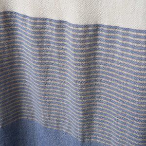 White top with tiny horizontal stripes that have gold thread
