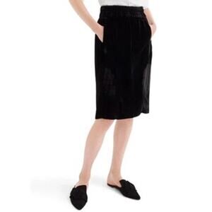The customer-fave, pull-on velvet skirt is back for the season and updated with feminine side slits and a below-the-knee cut—just in time for fall.