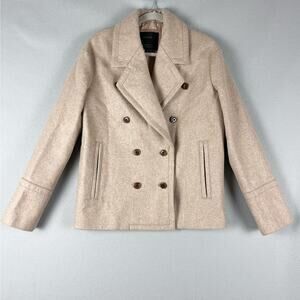 J. Crew Melton Wool Blend Pea Coat Women 4T 4 Tall Beige Lined Classic Preppy