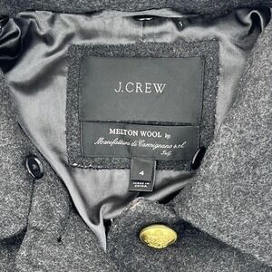 J. Crew Melton Wool Coat Dark Gray Gold Crest Button Military Jacket Size 4