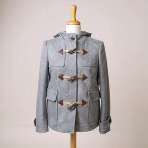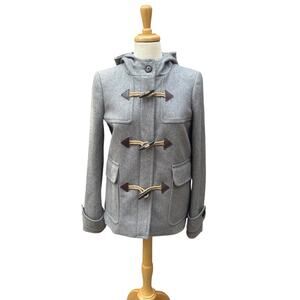 J. Crew Melton Wool Jacket Peacoat Sz 6 Gray Zip Toggle Button Hooded Lined