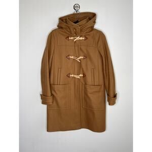 J. Crew Melton Wool Long Sleeve Hooded Toggle Coat Camel Women's Petite Size 6P