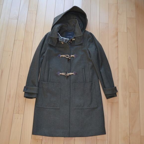 J Crew Melton Wool Toggle Coat Size 4 Forest Green Hood