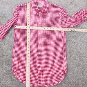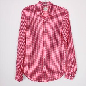 J. Crew Men's 100% Linen Gingham Burton Down Shirt in Red White Size XS