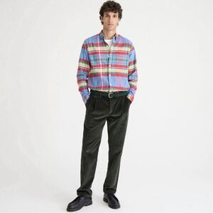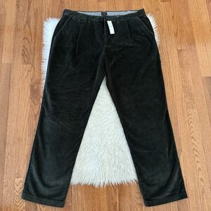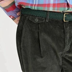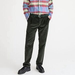 J. Crew Mens 38x32 Classic Single-Pleat 10-Wale Corduroy Pants Olive Straightleg