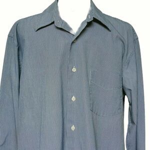Classic J.Crew men’s button-up shirt in blue and white checkered pattern. Size Large (16-16.5" neck) with long sleeves, buttoned cuffs, and button front. Made of 2-ply cotton for comfort and durability. Shows some light collar discoloration and signs of wear, giving it a distressed, workwear vibe. Perfect for casual, office, or layering with jeans, chinos, or slacks.
