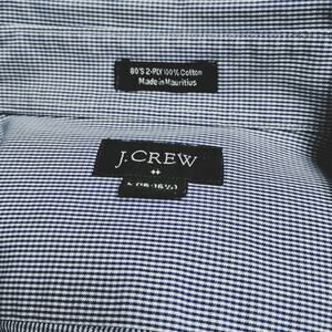 Classic J.Crew men’s button-up shirt in blue and white checkered pattern. Size Large (16-16.5" neck) with long sleeves, buttoned cuffs, and button front. Made of 2-ply cotton for comfort and durability. Shows some light collar discoloration and signs of wear, giving it a distressed, workwear vibe. Perfect for casual, office, or layering with jeans, chinos, or slacks.
