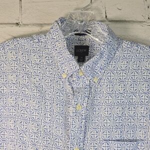 J. Crew Mens Blue and White Patterned Casual Shirt Linen Blend Slim Fit Med