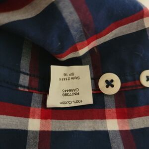 This is a men's J.CREW button-down shirt in size Medium with a red plaid pattern. It features long sleeves, a collared neckline, and a slim fit, making it suitable for both casual and business occasions. The shirt is made of cotton material, has button accents, and offers a colorful, classic, and preppy style. It also includes a button-down collar and pockets, making it a versatile choice for all seasons.