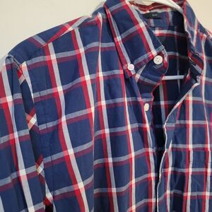 J Crew Mens Button Down Shirt Size Medium M Red Plaid Business Casual Slim Fit