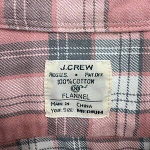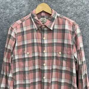 J. Crew Men's Button Up Casual Shirt, 100% Cotton Flannel, Pink Plaid, Size M
