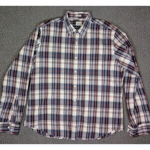 J Crew Men’s Classic Flannel Plaid Shirt Burgundy Button Up Size XL 100% Cotton