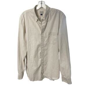 J. Crew Men’s Cotton Button Down Shirt, Classic Fit, Beige, Preppy, Academic, L