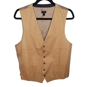 J. Crew Men's Crespi Vest Waistcoat M Tan Cotton Dapper 6 Button Preppy Academia