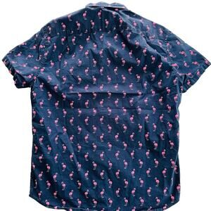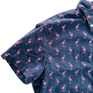 J Crew Men's Flamingo Button Front Short Sleeve Shirt Size Medium Blue Pink