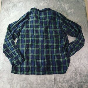 J. Crew Mens Flannel Long-Sleeve Pajama Top in Black Watch Tartan Large Navy pJ