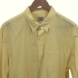 J. Crew Men's Gingham Pattern 2-Ply Cotton Long Sleeve Button-Down Shirt Yellow Large (16-16.5)