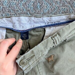Size 33W Regular army olive khaki green with embroidered dog pattern adjustable cuffed hems front and back pockets