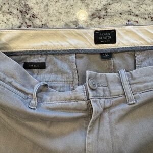 These J. Crew slim-fit pants are made of 97% cotton and 3% elastane. They are in good condition. Despite several tries, Poshmark continues to compress the original photo description, which results in the granular look on the listing photo... apologies for this.