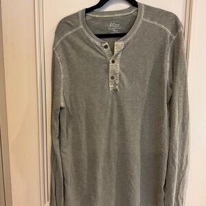 J Crew Men’s Henley Tee Long Sleeve Army Green Garment Dyed Cotton Medium M T