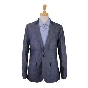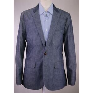 J Crew Men's Iridescent Denim Blue Cotton Patch Pocket Blazer Jacket Medium