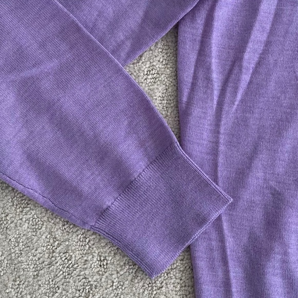 J. Crew Men's Italian Merino Wool V-Neck Sweater - Lavender/Purple - Size XL Slim - Preppy/Casual/Verstile. This v-neck sweater from J. Crew is crafted from the finest Italian merino wool, a material prized for its natural flexibility, breathability, and temperature-regulating properties, keeping the wearer warm in cold conditions and cool in warmer ones. Features a v-neckline, long sleeves, slim fit, and easy pullover styling. Pair with jeans or chinos for a casual look, or layer under a suit jacket for a more dressed up look. Excellent pre-owned condition - LIKE NEW!